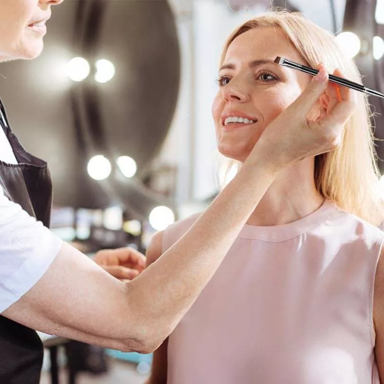 Eye Makeup Brush Single är en skönhet med dubbla ändar. Den har en exakt vinklad syntetisk borste för ögonbrynsdefinition och eyeliner, tillsammans med en spoolie för att trimma och blanda. Det eleganta handtaget säkerställer bekväm kontroll, perfekt för daglig och professionell ögonmakeup.