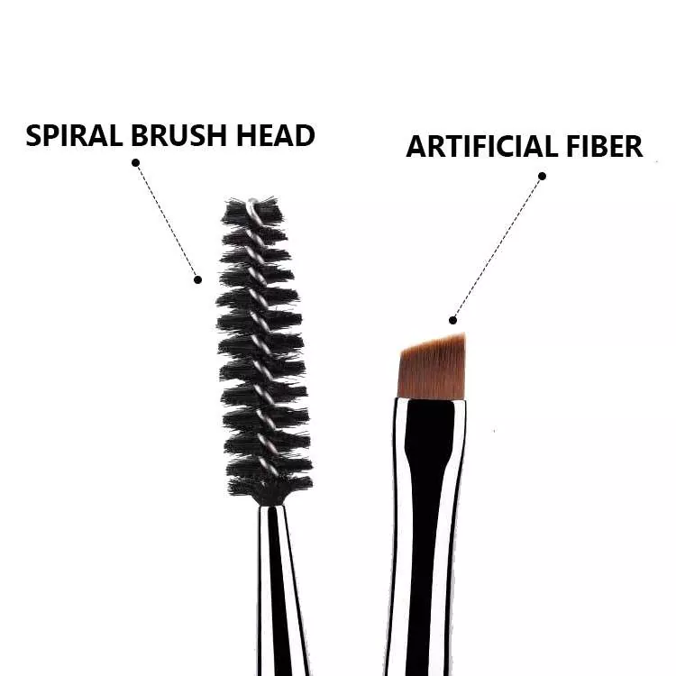 Eye Makeup Brush Single är ett verktyg med dubbla ändar med mjuka syntetiska borst. Använd den vinklade borsten för att exakt definiera ögonbrynen och applicera eyeliner, använd sedan spoolien för att ansa och blanda ögonbrynshår för en polerad, naturlig ögonlook.